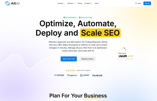 AlliAI is a tool focused on SEO automation and optimization, ideal for users looking to improve their website rankings. Its core features include AI-driven auto-optimization, bulk editing, real-time SEO monitoring, and CDN-level code deployment. It’s suitable for individual webmasters, businesses, and agencies.