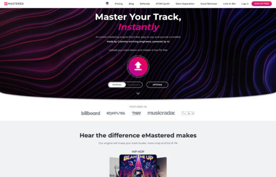That said, eMastered isn’t just a black box. It also provides custom controls, so if you want a bit more loudness, EQ tweaking, or compression adjustments, you can dial things in without feeling overwhelmed. Since it’s fully cloud-based, there’s no need to install software—it runs straight in your browser.