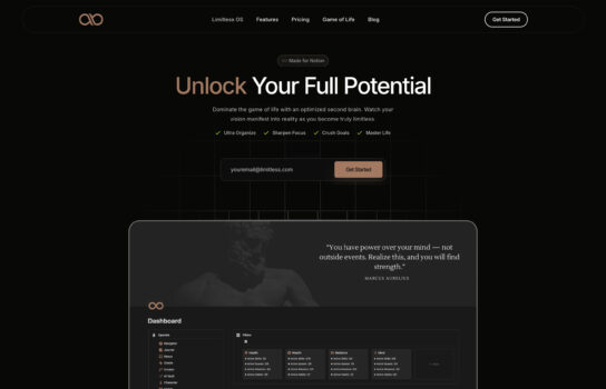 Limitless Operator is a powerful personal growth and productivity system built on Notion, integrating goal setting, task management, finance tracking, health monitoring, and knowledge organization. With strong cross-platform compatibility, it’s ideal for individuals focused on self-improvement and high performance.