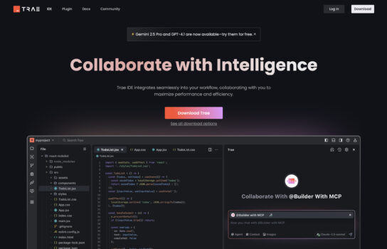 Trae is ByteDance’s take on the AI-native IDE space, and what sets it apart immediately is its focus on accessibility—it’s completely free to use and doesn’t even require an account unless you want cloud sync. While many AI-powered coding platforms put core features behind a paywall, Trae opens the door wide, giving developers access to real-time autocompletion, smart code generation, project scaffolding, and even multimodal development without extra cost. The international version integrates heavy hitters like GPT-4o and Claude, while the domestic edition leans on Doubao and DeepSeek, making it well-tuned for Chinese developers in particular. Its ability to handle conversational coding in Chinese lowers the entry barrier for newcomers and makes it appealing for teams that work primarily in that ecosystem. For anyone looking for a lightweight but capable AI-first IDE, Trae is an intriguing free option—especially for developers who want to experiment with advanced models without committing to a paid subscription.